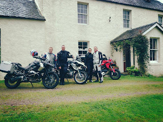 Below are last nights guests just leaving...they came in some style all the way from Yorkshire. We had to confine the dogs to quarters as they left being unsure about the wisdom of motor bike herding.
